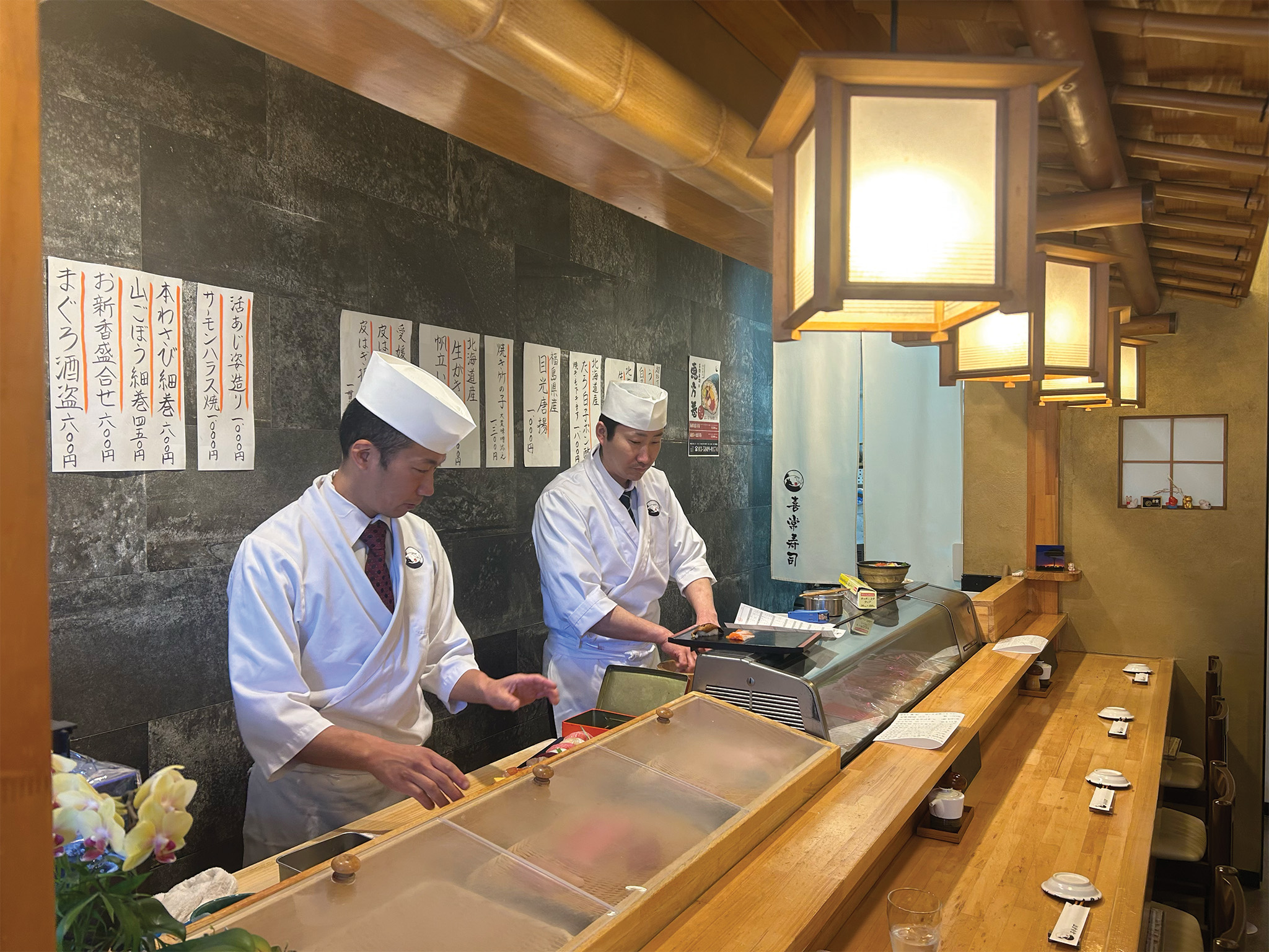 At the end of the meal, the sushi chef offers a final piece of isaki (grunt fish), flame-grilled to perfection, with smoky flavors enhancing its delicate white flesh. Kitsune Sushi offers a broad menu, along with daily specials, making it an ideal choice for both sushi newcomers and seasoned aficionados.