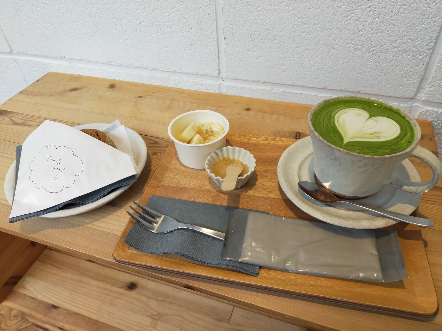 Crossing the street, you can then go and enjoy a delicious coffee or one of the best matcha drinks in Tokyo at Sorama Café. The homemade biscuits (oatmeal cookies, shortbreads with changing flavors each day) are delicious too.