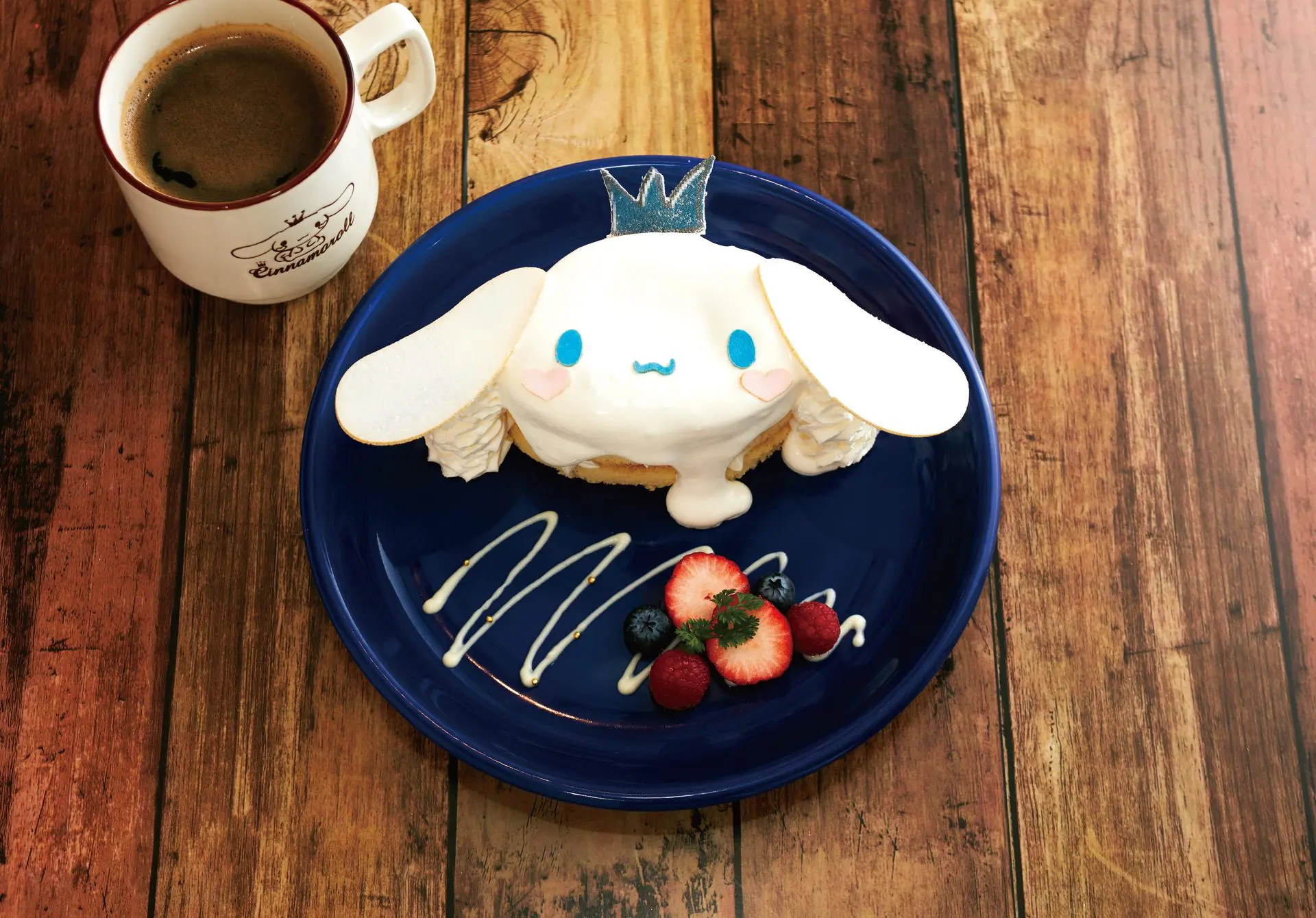 Sanrio’s much-loved long-eared, blue-eyed puppy has a permanent outpost inside Shinjuku Marui Annex. This modest café is a little more minimal than the others on this list but comes with big, fluffy Cinnamoroll plushies on the seats to keep you company if you’re dining alone. On the menu are many Cinnamoroll-shaped items, including the iconic Oyasumi Omurice, which features a sleeping Cinnamoroll as the rice and a fluffy omelet as his blanket. If you’re on the go, the café also has a takeout menu with a variety of hot and cold drinks on offer. Don’t miss out on the Cinnamoroll merchandise, including keychains, tote bags and badges.