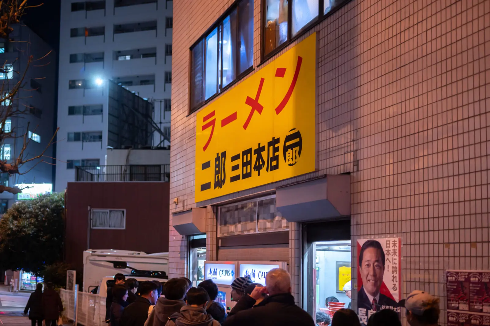 You can see Jiroians lining up outside the shop as early as 8 a.m. By around 5:30 p.m. or 6 p.m., the shop usually sells out. When I went with Shimizu-san, we were among the last 10 people to get a bowl, having gone for the dinner session. It’s that popular.