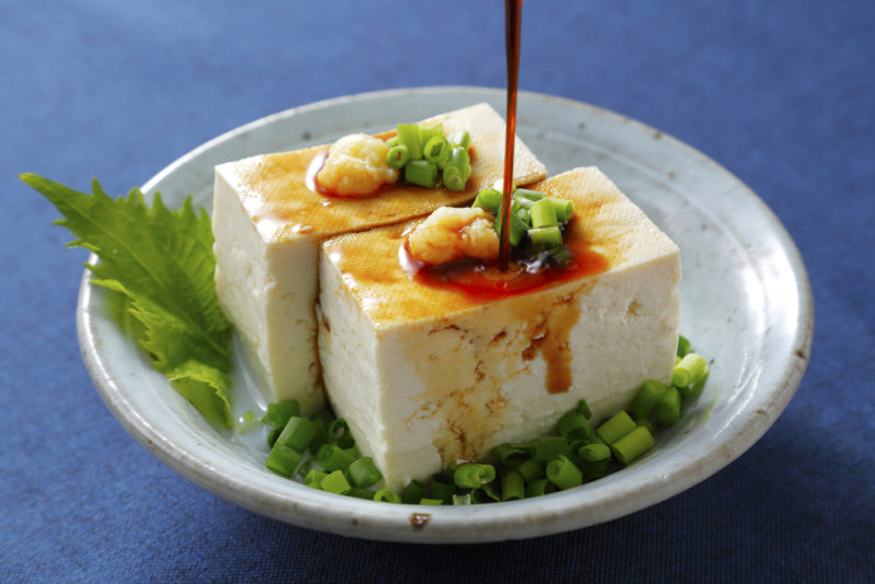 Chilled tofu, usually drizzled with soy sauce and garnished with green onion and ginger is a light and refreshing meal to start the day. Some plum paste and fresh myoga ginger are great additions, too. This dish got 625 votes.