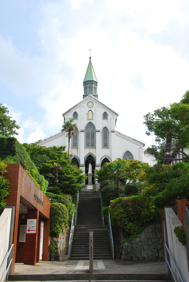 Established in 1865, Oura Catholic Church has become one of Nagasaki’s most symbolic structures. From afar, the church’s white walls and gothic-style pointed steeple stretch up from the hillside to the skies above. The closer you get, the more impressive it becomes—from the bottom of the stone stairs leading up to the entrance, the church towers above you, the trees on either side blocking out everything else.