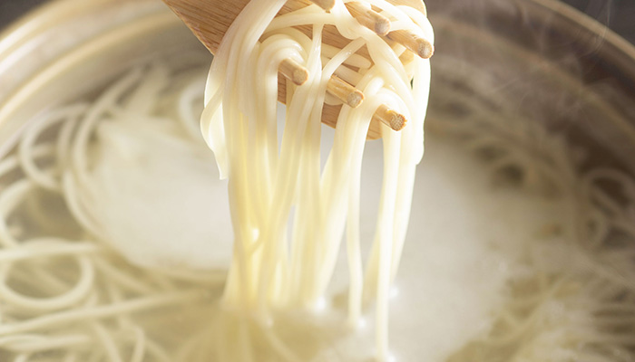 Nagasaki Prefecture’s Goto Islands are famed for their signature hand-stretched (tenobe) udon noodles, which are thinner and have a chewier consistency than your average noodle. They’re also renowned for their healthy, delicious camellia oil (tsubaki), which comes from Shinkamigoto Island and is used for cooking the noodles, and for a type of flying fish called ago, which forms the base of the soup stock.