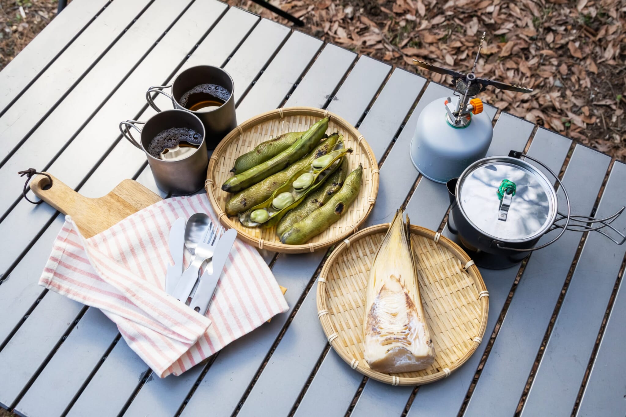 Japanese asparagus is delicious, and comes in both thick and thin varieties. The thick type is especially good for a barbecue. It holds its juiciness for longer, which reduces the chance of it drying out. Cut and skewer.