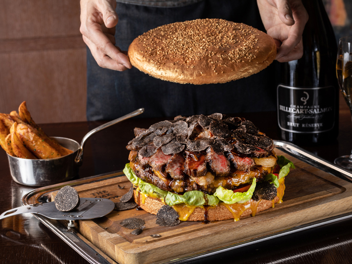 Following their 15th anniversary renewal burger in 2018, which boasted a 1.5kg patty, Chef de Cuisine Patrick Shimada has created a Golden Giant Burger. Because this meal is designed to be shared (we dare you to try and finish a whole one on your own), the TW team went along to grab a slice of this luxury burger.