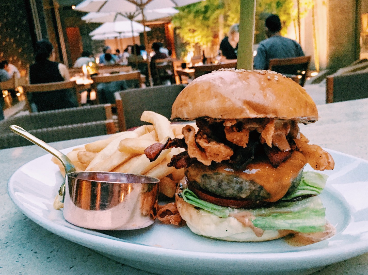 There is nothing savory about this burger. It’s all sugar and comfort and lip-smacking sweetness. It’s big enough to share between two as a dessert, especially if – like us – you’re ordering this beefy burger as a main: