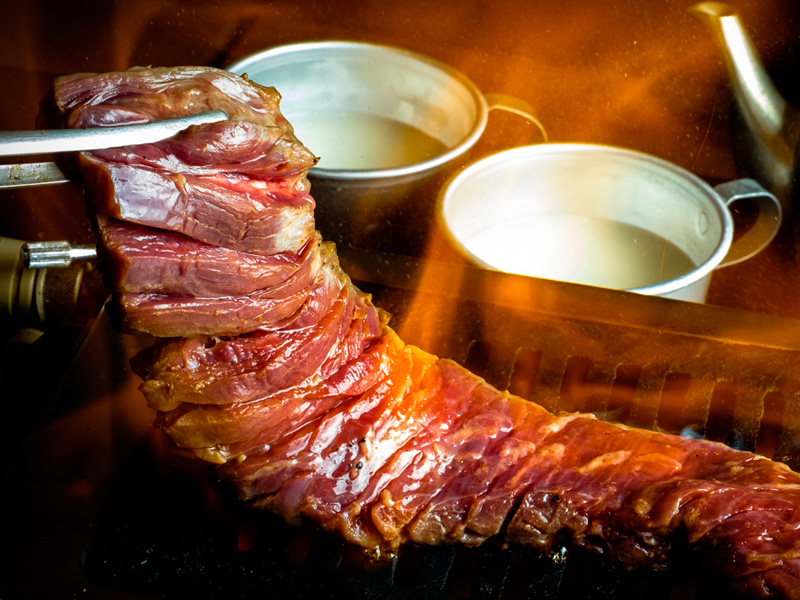At Bebuya, guests can order an impressive, 300-gram strip of steak which measures in at over 30 centimeters. Grab your phones, because this long piece of skirt steak makes quite a visual impression, especially when pulled from its tiny piece of serveware.