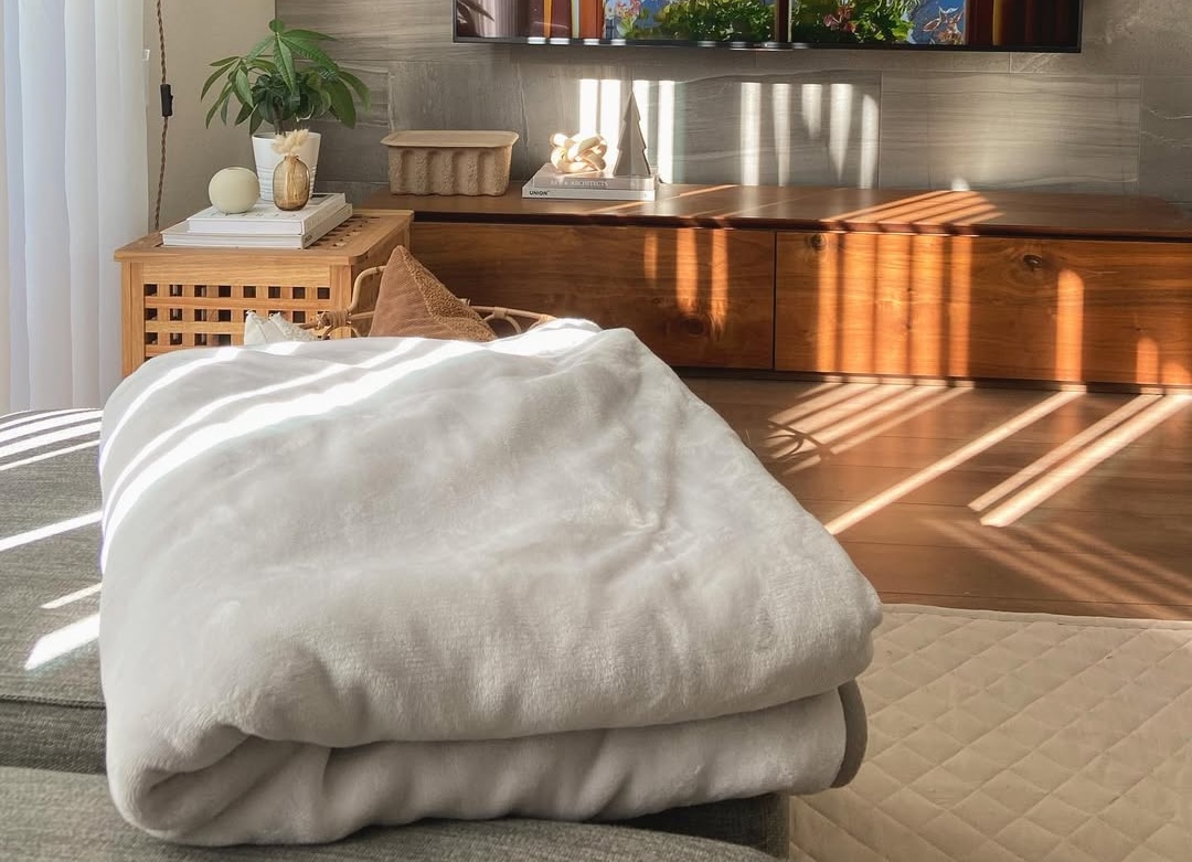 Muji offers electric blankets in various sizes, including a traditional plug-in version and a USB-powered option. Koizumi features different fabrics and designs to suit any aesthetic. For a more luxurious touch, Lalaca offers a microfiber sleeping blanket equipped with a room temperature sensor that automatically warms up when the temperature drops below 15 degrees Celsius.