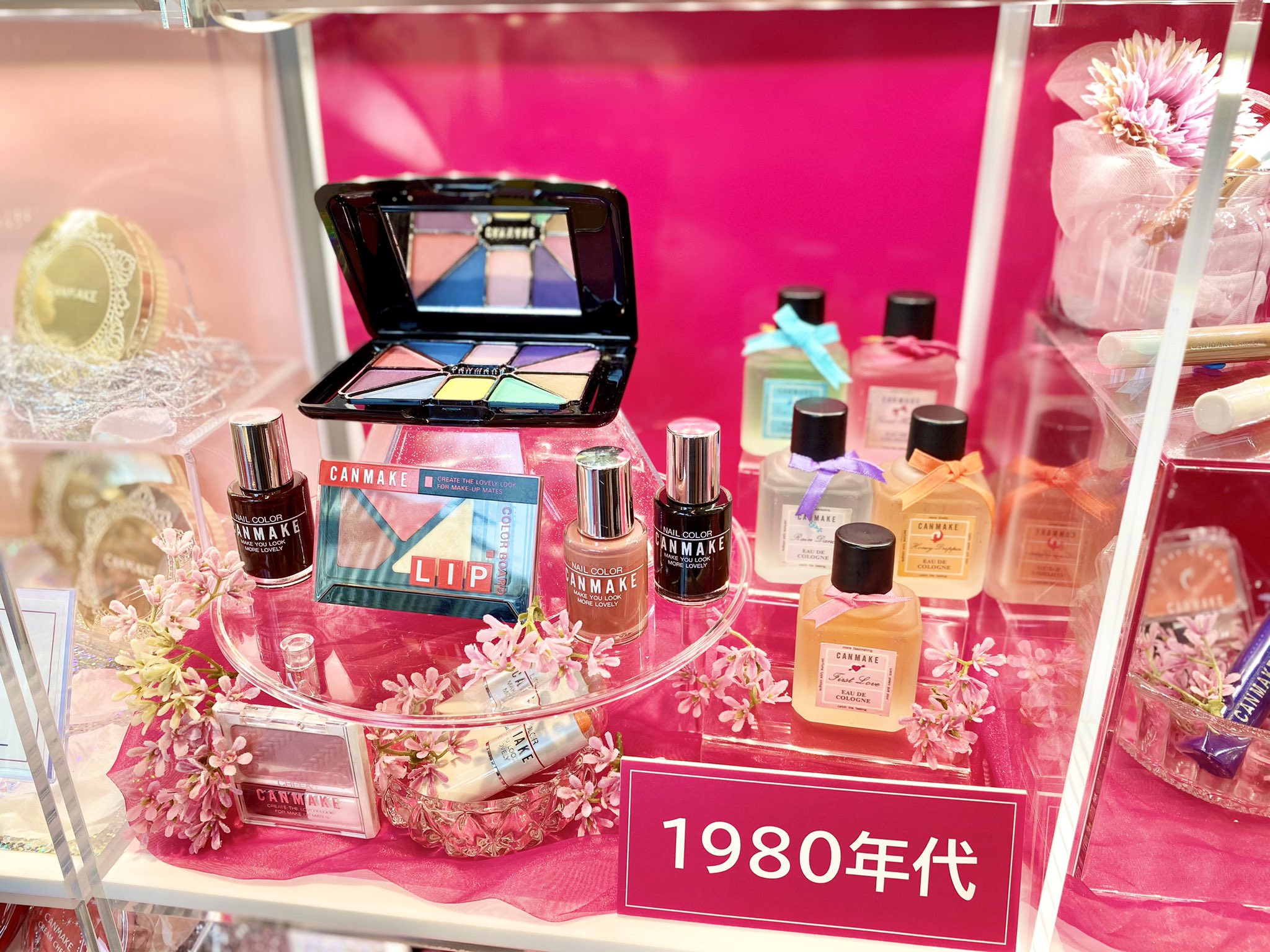 Canmake launched with a handful of basic but eye-catching products: a line of lipsticks, eyeshadows, blushes, nail polishes and colognes. With the aesthetic of the 80s and the present bubble economy, having strong accents in each part of the face was a popular look. Looking at the relationship between socio-economics and makeup trends, sharp and upbeat looks tend to grow in fashion to match its flourishing environment.