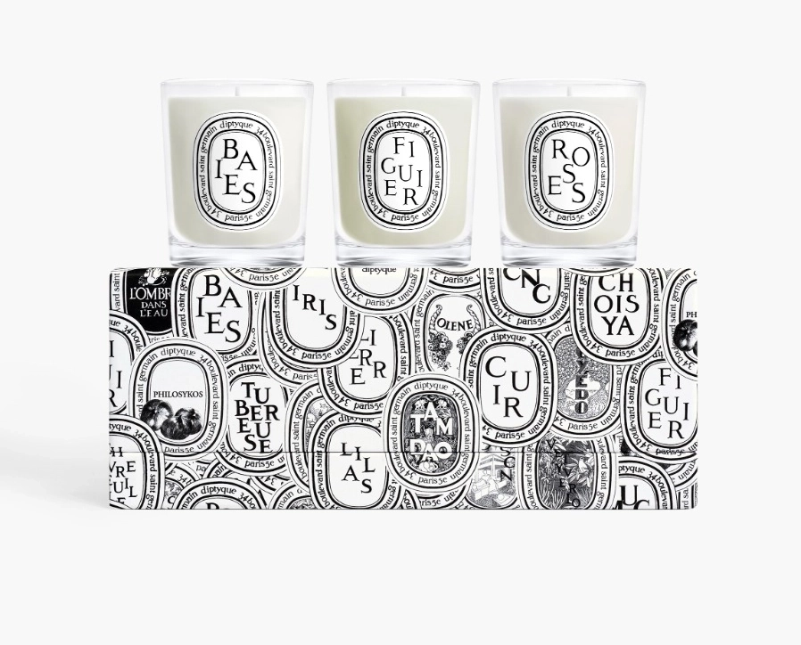 This three-candle set highlights Diptyque’s iconic aromas, offering a beautifully packaged way to sample the brand’s classics.