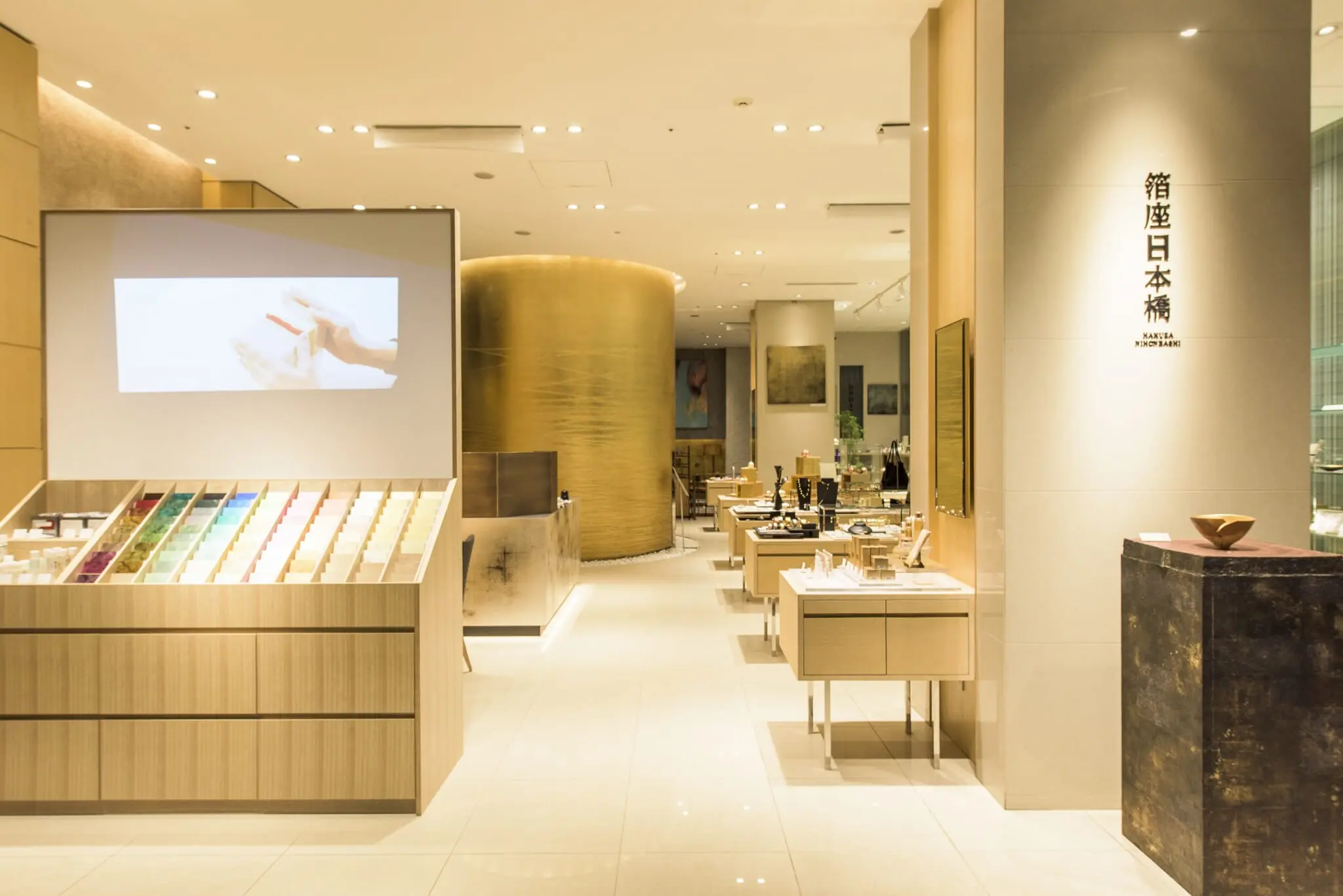 Entsuke, a gold leaf production technique from Kanazawa, has existed for more than 400 years and is now being passed down by just a handful of master artisans. It’s an important aspect of preserving Japanese national treasures and craft skills. As the flagship store of Hakuza, a gold leaf manufacturer in Kanazawa city, Hakuza Nihonbashi is dedicated to showcasing this artform.