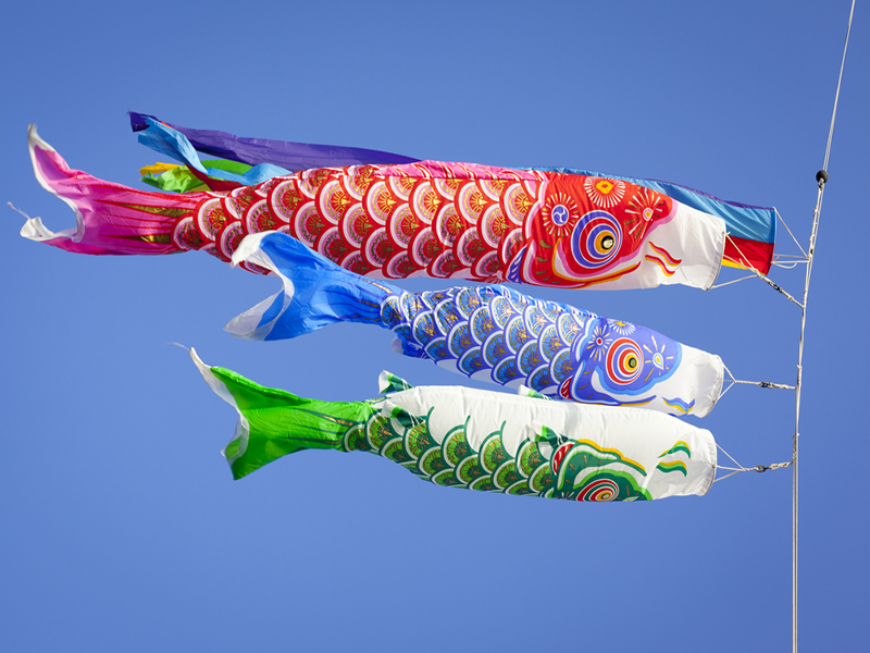 This collaborative art installation puts a new spin on the traditional Children’s Day koinobori. Koinobori are the colorful koi carp-shaped streamers hung outside houses to commemorate Children’s Day, in the hopes that the young will grow up strong and “swim upstream.”