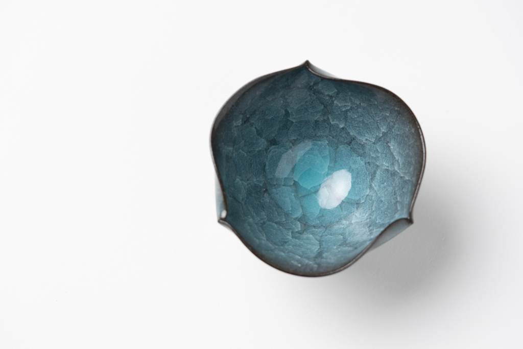 In this exhibition, his oeuvre of artistically elevated everyday items such as sake ware, tea bowls, teacups and flower vases are showcased. Imaizumi’s Celadon line has a sense of infinite depth, while the Tenmoku works are reminiscent of a starry night sky.
