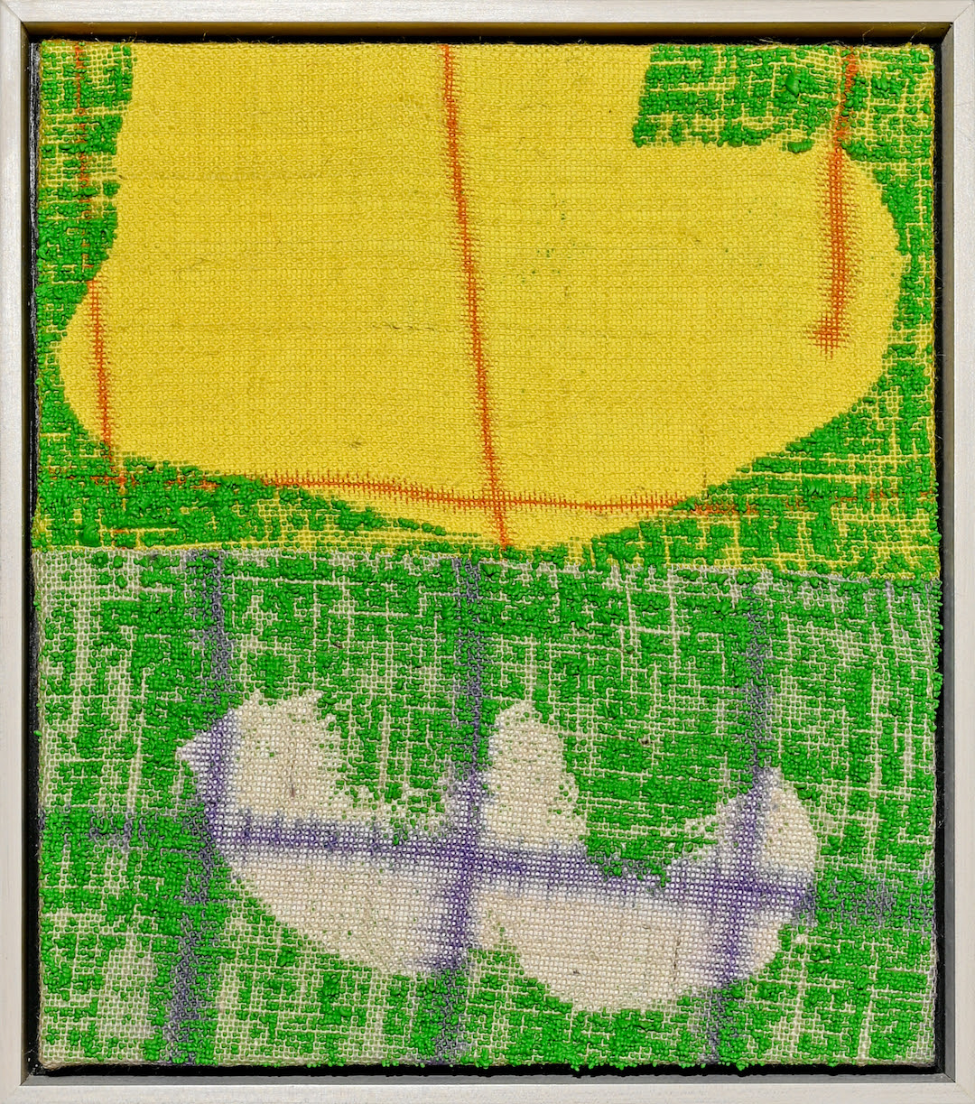 Echoland 2, 2021, Acrylic, dye, ink on burlap, 16″ x 14″ (40.6 x 35.6 cm)