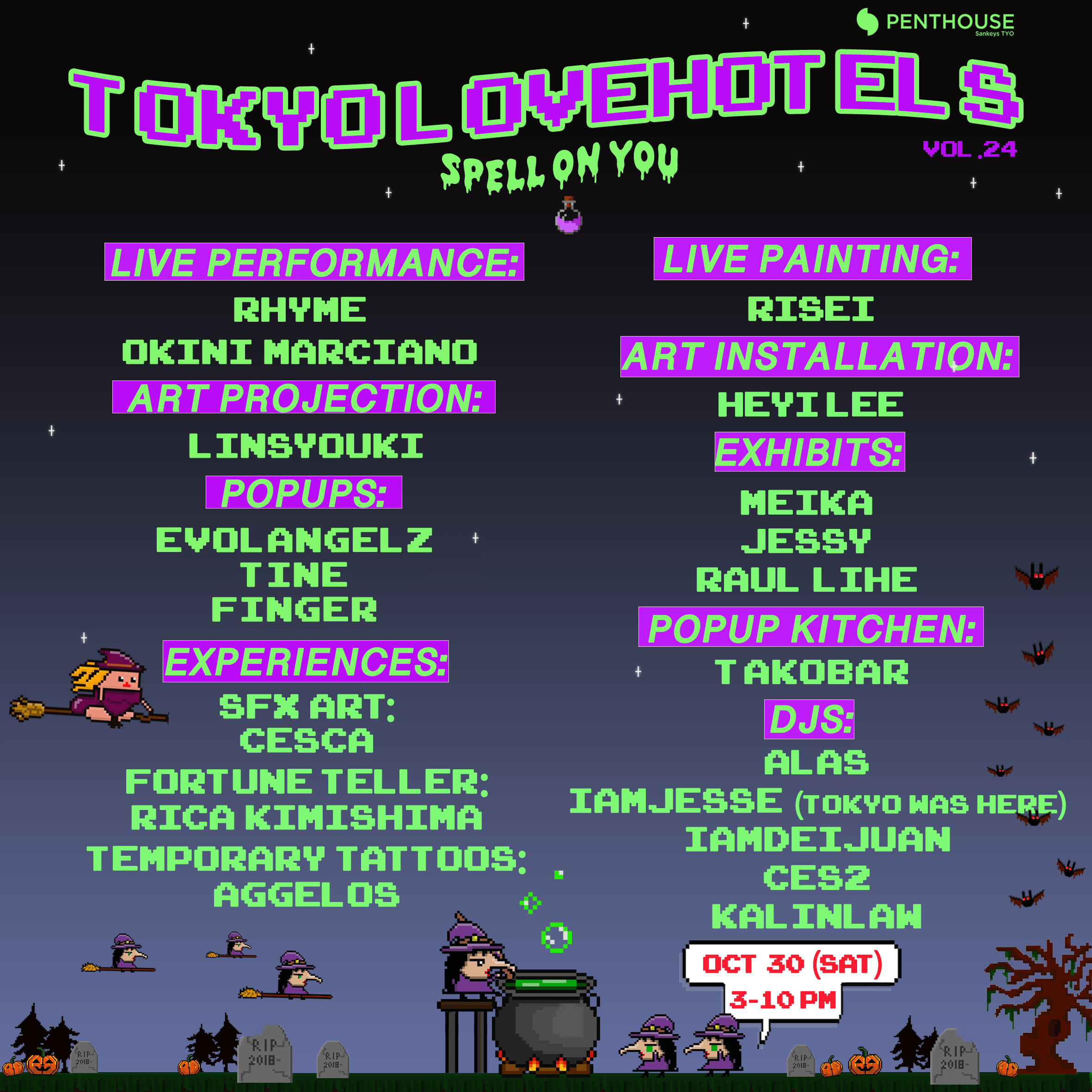 This week is your last chance to enjoy Tokyo’s Halloween events. Also on the schedule, the latest edition of Tokyo LoveHotels, a new NFT exhibition and charity event at Trunk (Hotel), and more. Though the SOE is lifted, keep up with social distancing measures and limit unnecessary outings when possible.