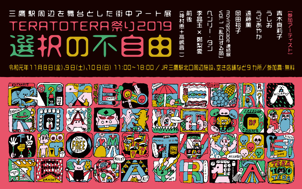 During the three-day festival, nine artists will produce installations, performances and video works held in 10 locations, including local vacant properties in the area around Mitaka Station. This year’s theme explores “barriers of the freedom of choice.”