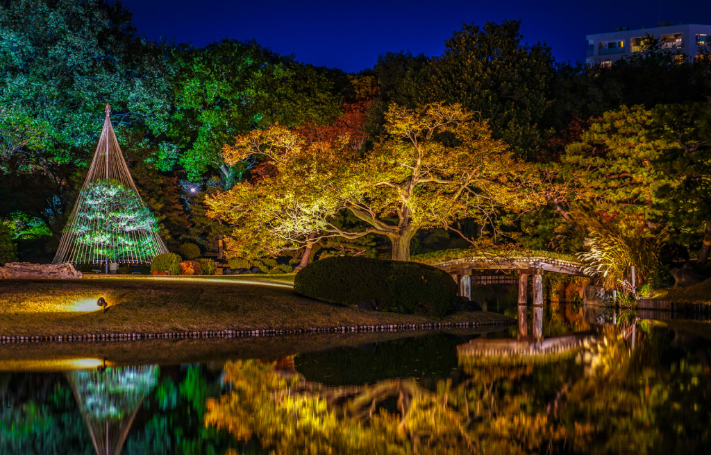 Built by a feudal lord during the Edo period, Rikugien Gardens was designed to reflect scenes from waka poems. The Tsukiyama-Sensui style garden’s illumination event is the perfect way to admire the fiery flames of autumn foliage.