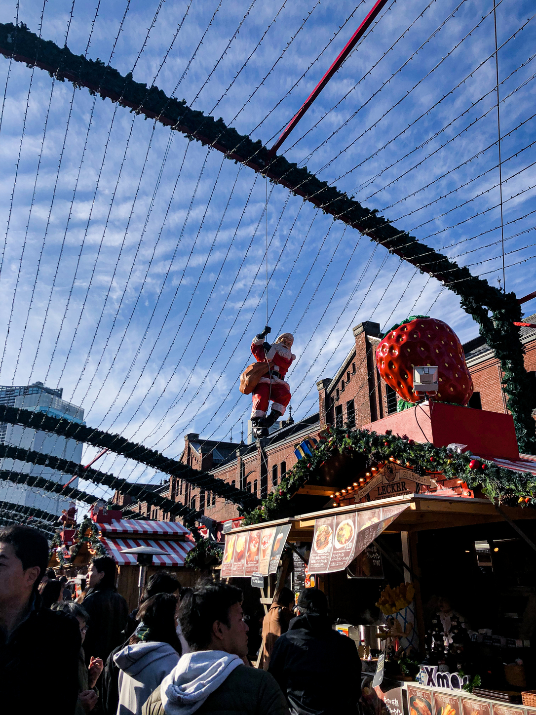 Christmas in Japan means couples canoodling over a romantic dinner, families splurging on fried chicken and Santa Claus around every corner – whether there are 5,000 of them running around Komazawa Olympic Park or 105 of them stamping bingo cards at Tokyo Station. Another favorite holiday tradition in Tokyo is the European-style Christmas market. Over the weekend, I traveled to Yokohama to pay a visit to the annual Christmas market held at the iconic Red Brick Warehouse. Here, the holiday spirit was in abundance, as were the “authentic” European Christmas experiences.