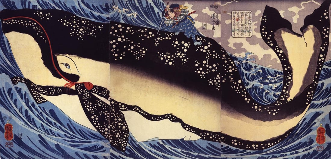 ‘Miyamoto Musashi Killing The Whale’ (1847) Utagawa Kuniyoshi