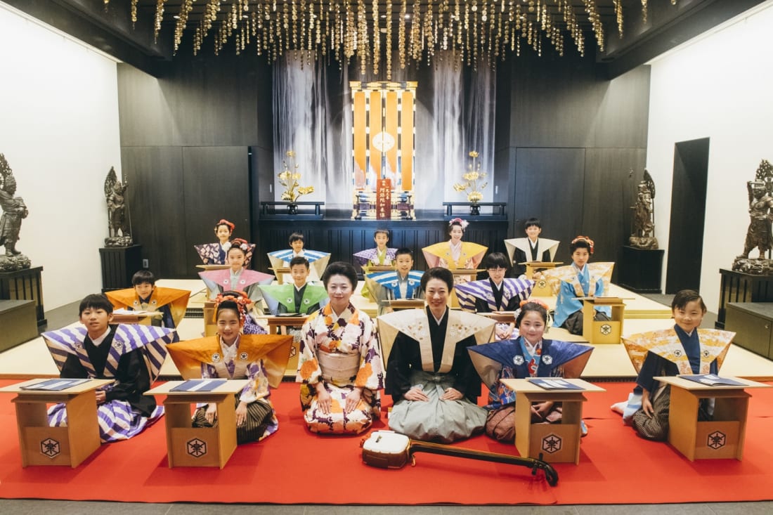 Elementary students from the area surrounding the Sumida neighborhood, rumored to be Hokusai’s place of birth, collaborate with guest musicians to perform traditional Japanese music.