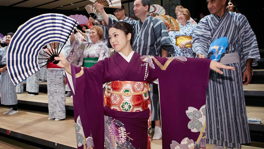 With the help of experienced teachers learn the simple movements of nihon buyo (traditional Japanese dance) while wearing a yukata – the informal cotton kimono.