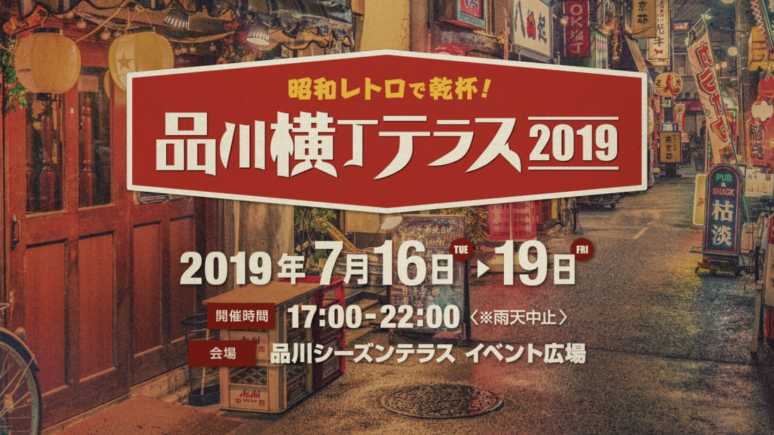 The Shinagawa Season Terrace Event Plaza transforms into an old style yokocho (alleyway), conjuring up a nostalgic atmosphere with Showa music and drinking party games underneath red glowing lanterns.