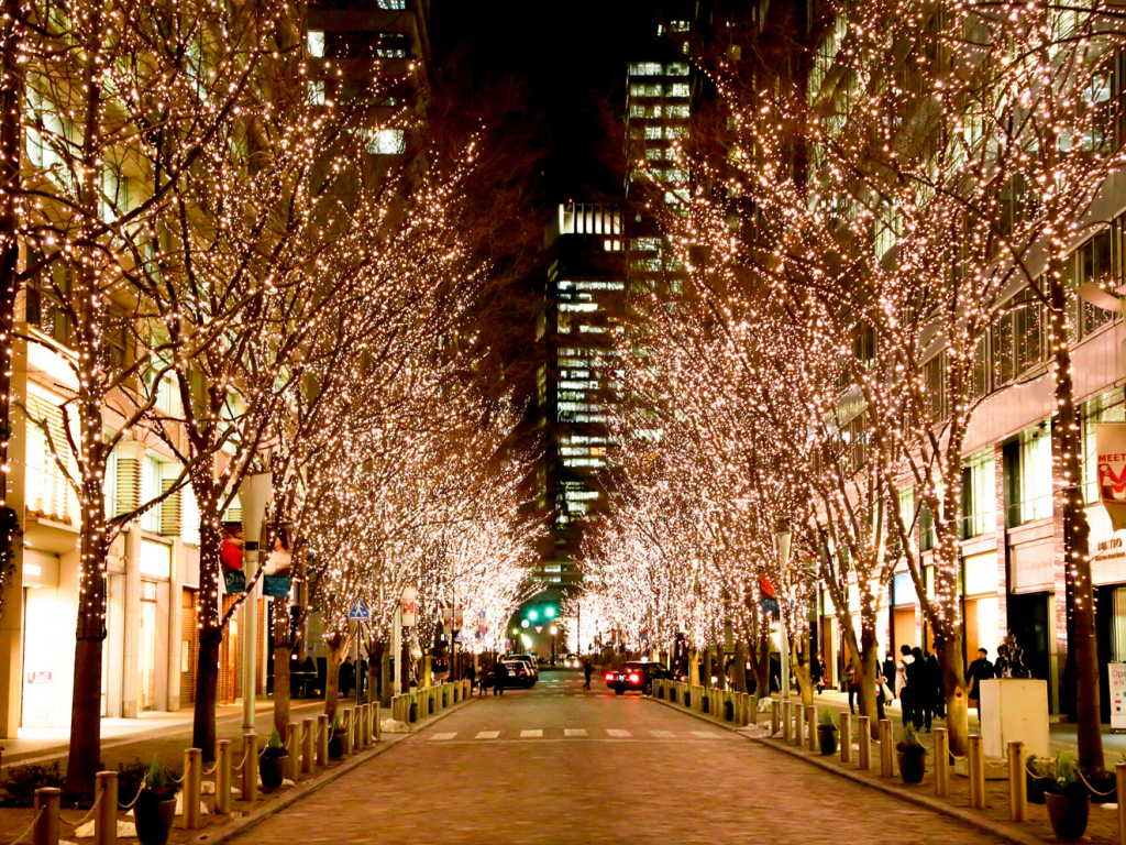 Featuring Champagne gold lights that decorate cobblestone streets, sculptures and 200 roadside trees along the chicest streets in town, Marunochi Illumination turns Yurakucho, Tokyo and the Otemachi area into a picture-perfect European holiday miracle.
