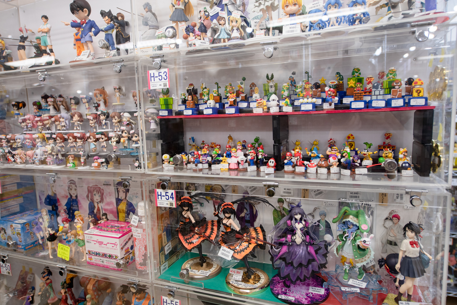 Multiple treasure troves await you with floor-to-ceiling toys, dolls and trinkets as well as model kits, soft vinyl toys, plush dolls, trading cards and otome (video games targeting women). This is the place to hunt down that elusive capsule machine prize, rediscover a nostalgic character’s classic merchandise, or simply enjoy wandering around making new discoveries. A so-called cube system lets people rent out cabinet boxes to sell off their surplus collections, creating dozens more micro shops to browse with constantly changing contents. A handful of specialty stores focus their wares for more particular fans and enthusiasts. Find model trains at Sukeruton, yo-yos at SpinGear and a plethora of pop idol ephemera across both floors.