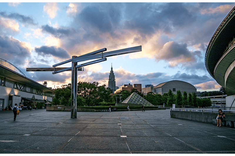 Of course, Sendagaya wouldn’t be a complete neighborhood without its share of outdoor recreational parks. Luckily, the neighborhood is basically surrounded by greenery. Shinjuku Gyoen (11 Naito-machi, Shinjuku-ku), one of the premiere spots in Tokyo for viewing cherry blossoms during hanami season, is to the north. And one of the most visited spots in Yoyogi Park, Meiji Jingu Gyoen (1-1 Yoyogi Kamizonocho, Shibuya-ku), lies just west of Sendagaya. Meiji Jingu Gaien (Kasumigaokacho 1-1, Shinjuku-ku) is to the east, boasting several sport venues, including an ice skating rink and Japan National Stadium. One of the most iconic structures of Sendagaya, Tokyo Metropolitan Gymnasium (Sendagaya 1-17-1, Shibuya-ku), is also nearby, edged by a large plaza where you can get a nice sunset view of the Empire State-like NTT Docomo Building (Sendagaya 5-24-10, Shibuya-ku) and the Shinjuku skyline.