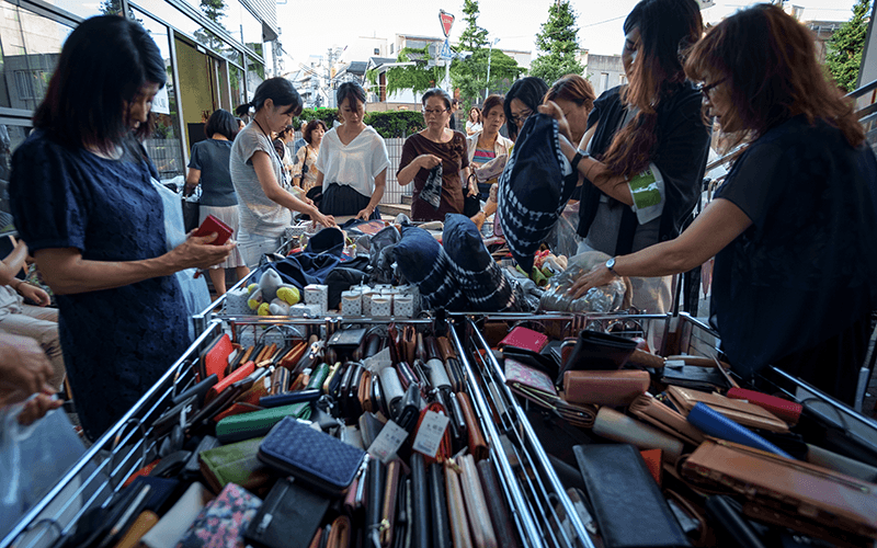 Thanks to its location next to Harajuku, Sendagaya is home to dozens of fashion stores, studios and offices, especially in the 3-chome area. Many of the clothing warehouses in the area hold seasonal sample sales and special promotions, making for quite a mob scene of deal-seekers and thrifty shoppers. Fashion brand A Bathing Ape (or Bape) is one such company based in Sendagaya, along with dozens of others. Southern California-based brand Ron Herman has a boutique offering men’s and women’s apparel, as well as a slice of SoCal at its Sendagaya store (Sendagaya 2-11-1, Shibuya-ku), which includes a popular café and surf shop. There are plenty of highly specialized apparel stores too, such as No No Yes – a team of masterful tailors, dealing exclusively in leather.