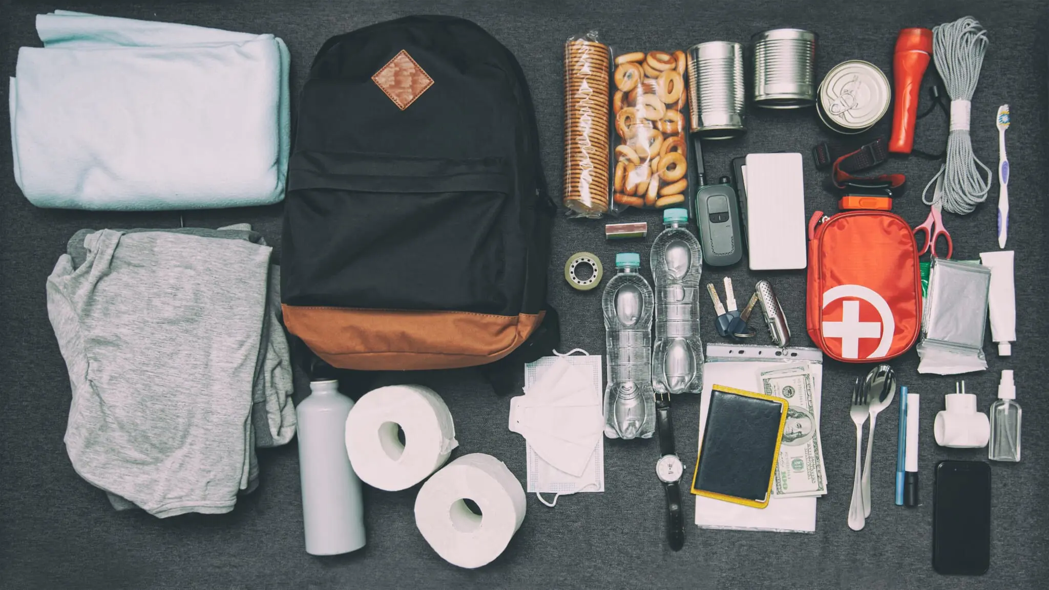 You’ll want to make an emergency kit and keep it in your home. Make sure to include a first aid kit, a flashlight, a portable radio, some batteries, blankets, copies of important documents and cash. You’ll also want a stash of water and nonperishable food items. The recommended amount of water and food to stockpile is at least three days’ worth, with the metric of a gallon of water per person per day.