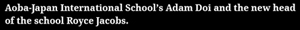 Royce Jacobs, formerly Head of International Secondary School in Tokyo, has since been appointed the new head of Aoba-Japan International School. Mr. Jacobs has pioneered many individualised learning programs both in Japan and the United States; and has worked in education for the past 12 years, as a teacher, an administrator and a head of school.