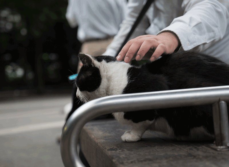 The cats, however, don’t mind sharing their affection—on their own terms—with just about anyone who wants it. The result is essentially a cat cafe with no time restrictions, cover charges or climate control. Because the cats are essentially in control of the “cat” experience, your mileage may vary. There are some cats who clearly enjoy human affection and there are some that go out of their way to avoid it. Most of them, however, straddle this line based on how they feel at that moment in time—after all, this is one of the reasons we like cats, right?
