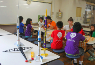 A couple of generations ago, this might have just been group of kids playing around in a back lot, but as Greg Culos, Director of Development at Aoba-Japan International School explains, students at Aoba’s Summer Program are using the opportunity to not only develop a scientific understanding of the inner workings of the rocket they sent up skyward, but also to improve their English skills and work as a team. “And,” as Culos reminds us, “they’re having fun at the same time!”