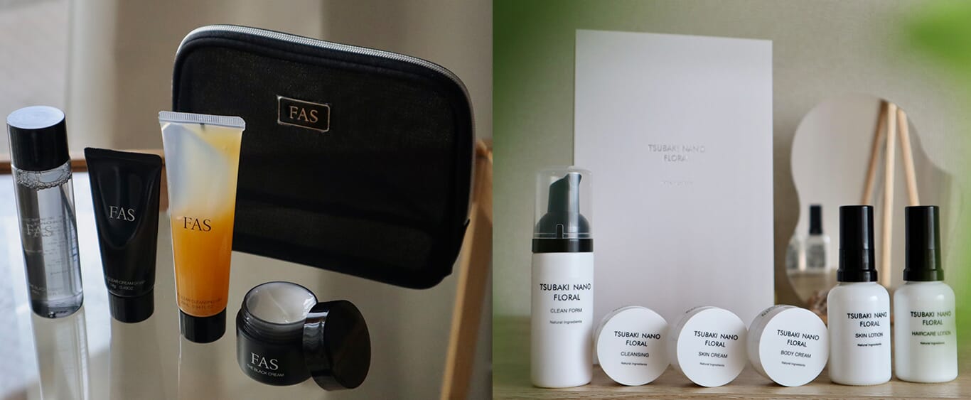 The skincare brands, Tsubaki Nano Floral and FAS, celebrate Japan’s rich natural ingredients and innovative skincare practices. Tsubaki Nano Floral uses naturally derived ingredients from Kyushu, including spring water from Mount Tobikata, Suizenji nori seaweed from the Kogane River and neroli water from Nagasaki oranges.