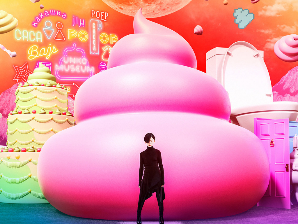 When you first enter the Unko Museum Yokohama as part of a six-to-eight-person group, you’re greeted by black walls, bright studio lights, a screen showing various cartoon-poop animations and poop-related puns, and staff wearing poop hats. You cannot proceed farther until the entire group shouts “unko!” (“poop”). After that you will be shown to the group toilets.