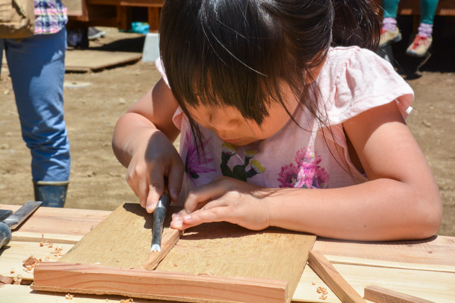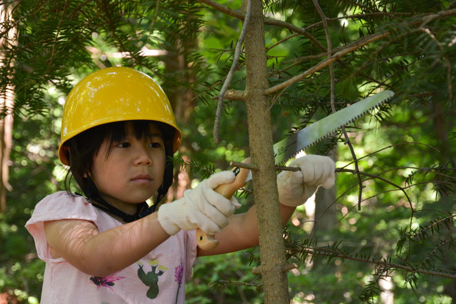 A group of visiting children run amok around the land, hollering initially like wild animals; the volunteers organizing the projects do not lecture, scold, or limit them. Instead, the children are handed saws to level trees, scrapers to make chopsticks, axes to cut firewood, gloves to pluck clams from the sea, knives to prepare their food, and matches to light their fires. The leaders shared, and invited the children to join the next activity. Within minutes, the children were fixated, and diligently working, taking in everything.