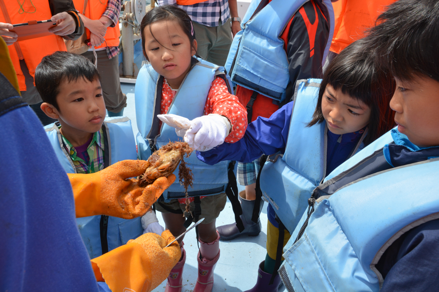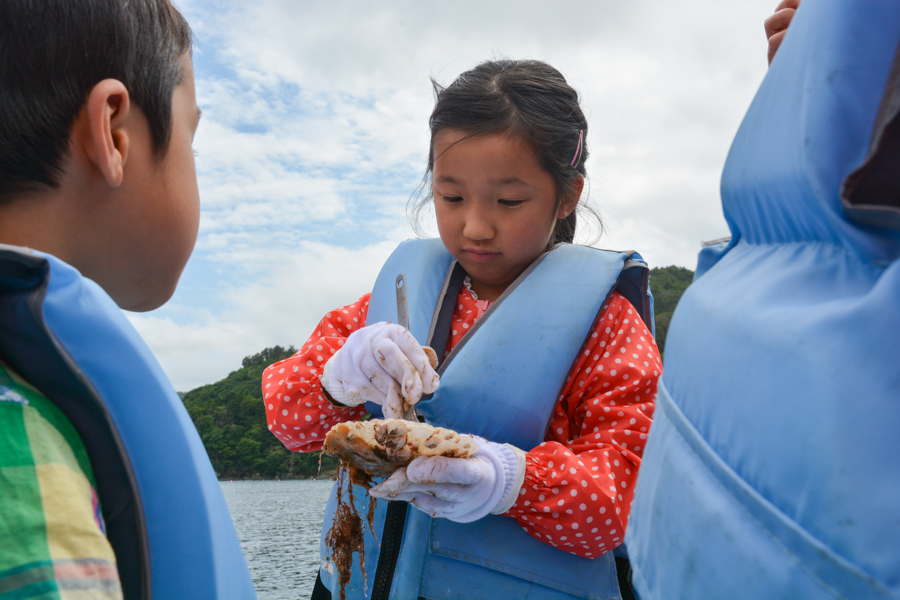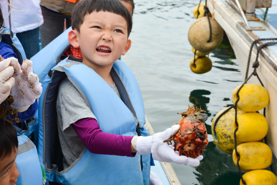 On the first day at Moriumius, the children were invited onto local fishermen’s boats to witness the process of catching seafood for dinner. They cracked open shells and sea squirts, and tasted scallops straight from the sea. Most faces expressed sheer delight. The fishermen’s faces lit up when the children bombarded them with questions.