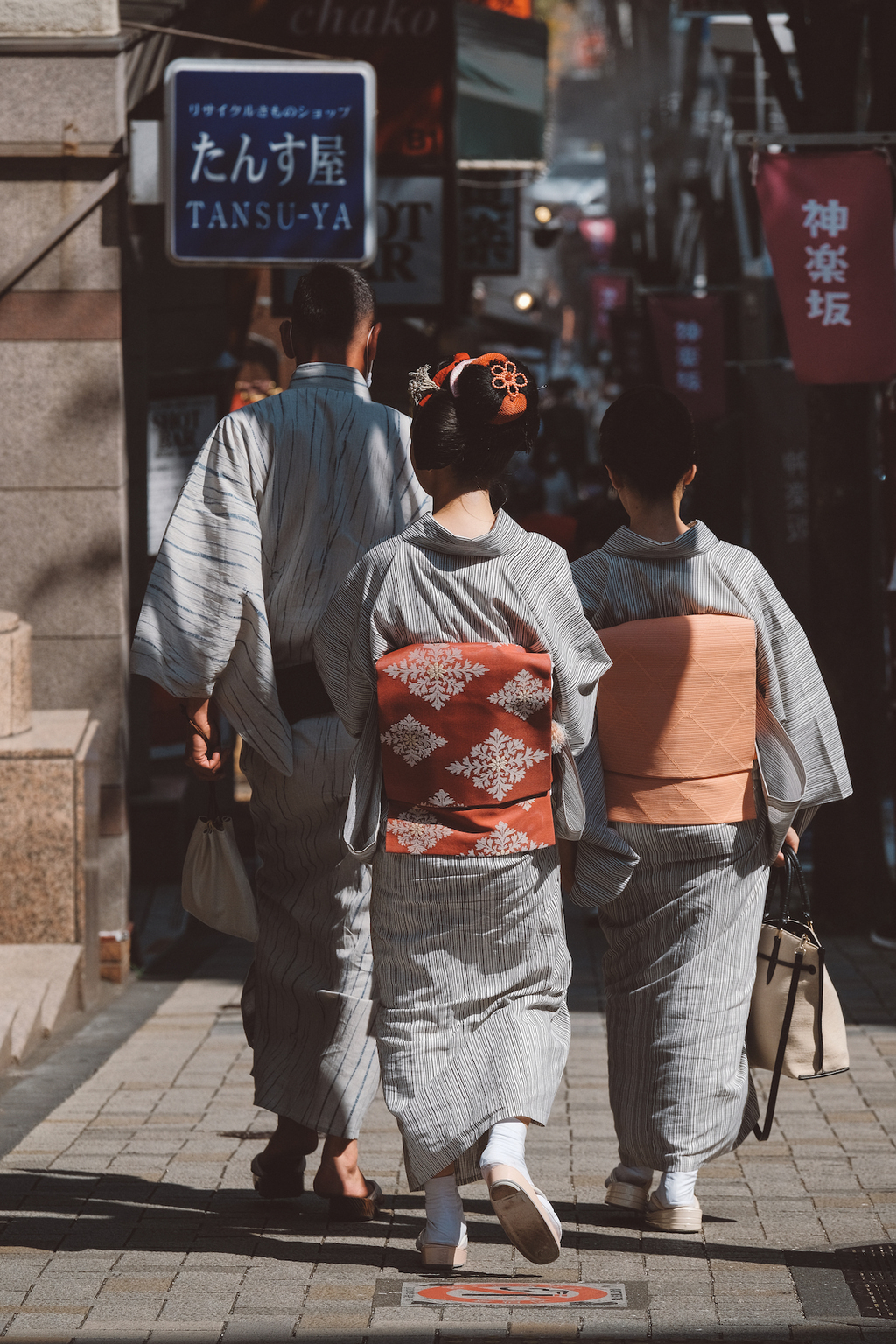 The tree-lined Kagurazaka-dori is the main artery of the neighborhood, with boutiques and specialist stores oozing quality along its route. Heading up the hill from the river, enjoy alfresco dining on the boat deck of Canal Cafe, grab an area-exclusive Peko-chan-shaped obonyaki from Fujiya Iidabashi-Kagurazaka, or a fresh, steamy nikuman from the long-standing Gojuban. Inhale the enticing aroma of hojicha being freshly roasted and browse blends of tea sourced from across Japan at Rakuzan, or pick out a stylish souvenir (that you’ll likely want for yourself) at Noren.