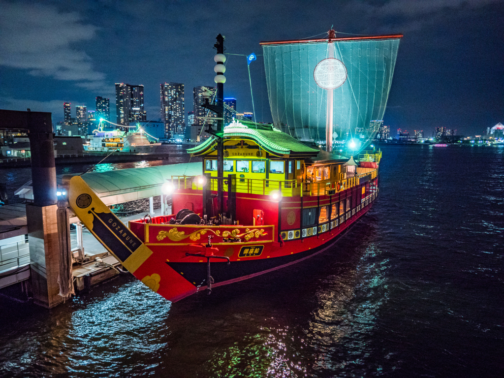 The Gozabune Atakemaru (pictured top) is a replica of a ship commissioned by Iemitsu Tokugawa in 1632. Both the original and its replica display an air of opulence and comfort, but while Tokugawa’s pleasure boat was also used for war, the modern day version is simply for fun. The ship offers a great view of Tokyo Bay at night along with a dinner show featuring performers from the famous Shiki theater company. The stage show is interactive, creating a fun and lively atmosphere for all ages.