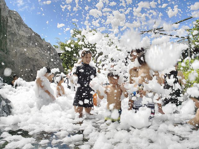 The popularity of the projection mapping show is second only to that of the foam party, which is held twice daily on weekends and holidays between July 14 and September 2.