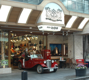 One of Motomachi’s more renowned stores, Hiroki Fur and Leather offers just about any fashion item made with what the store’s name suggests. The store is impossible to miss, with a red 1950s MG old-timer car in immaculate condition standing at its entrance, attracting curious passersby to come in and have a look. Opened in 1974, Hiroki specializes in fur and leather clothing, wallets, shoes and bags, and everything is designed and produced directly by
