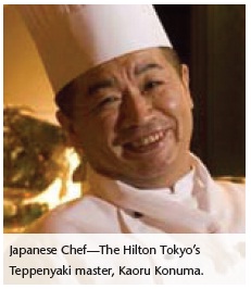 Younger generation Japanese chefs are said to be looking west for culinary inspirations, but for 53-year-old Kaoru Konuma, who has 27 years of culinary mastery under his belt, the dedication to his native cuisine remains undeterred. Now reigning at the Hilton Tokyo’s Teppan Grill, and cooking before a very international clientele, he remains proud to educate his guests on the fundamentals of Japanese food preparation. ‘I believe that Japanese food is the best in the world… the delicate presentation representing seasons cannot be seen in other cuisine.’