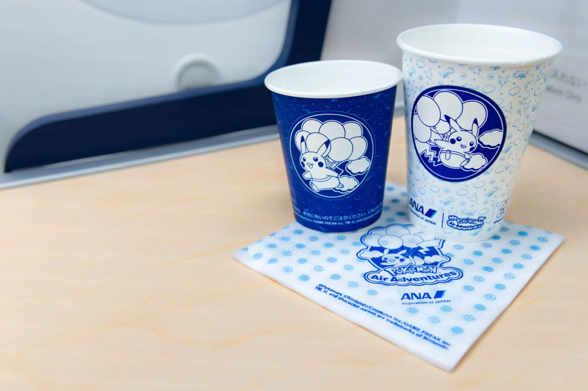 Once up in the air, in-flight entertainment which includes exclusive content in the form of Pokémon Kids TV and Pokétoon (stylized as POKÉTOON). Further highlighting the uniqueness of this experience are the in-flight cabin crew, who while wearing original uniforms in pink and blue specifically designed to match the overall theme of the Pikachu Jet, keep customers refreshed with snacks and beverages that come with Pikachu branded cups and napkins.