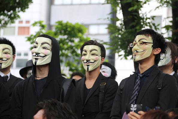 Anonymous, distinguished by their Guy Fawkes masks, say that few people in Japan know the significance of the new laws, due to media not reporting them, and that they want to spread their concerns, which, they say, are “valid and sincere.”