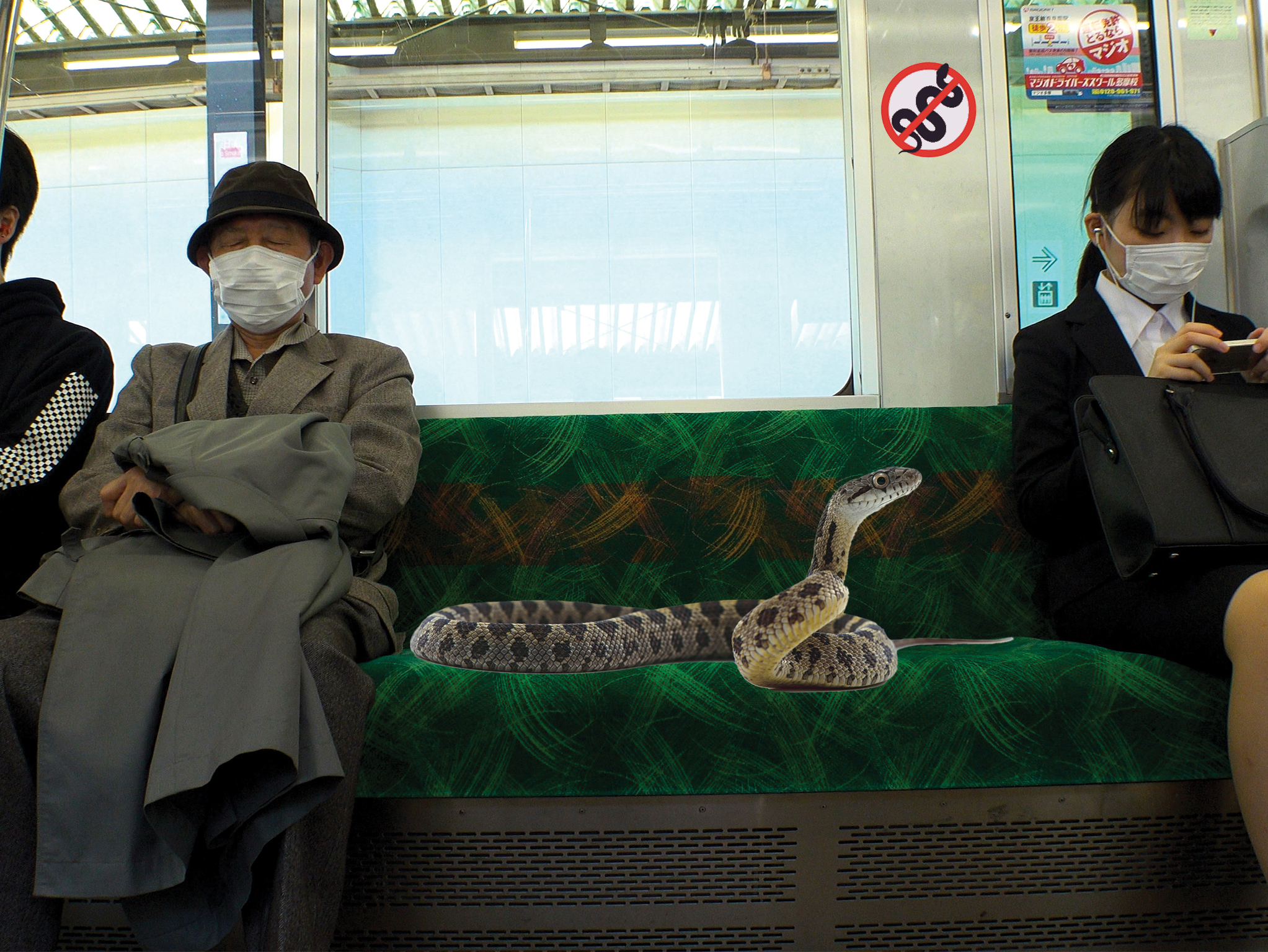 While JR does allow small cats, dogs and even pigeons on trains in Japan, it draws the line at snakes. If a passenger is found to have brought in a dangerous item that is prohibited, he or she may be charged with forceful obstruction of business. If an animal bites or injures a passenger, the owner may be charged with gross negligence. There is, of course, the possibility that it was a wild snake. They can sometimes crawl into folded umbrellas or travel along power lines.
