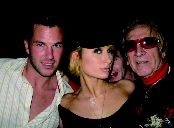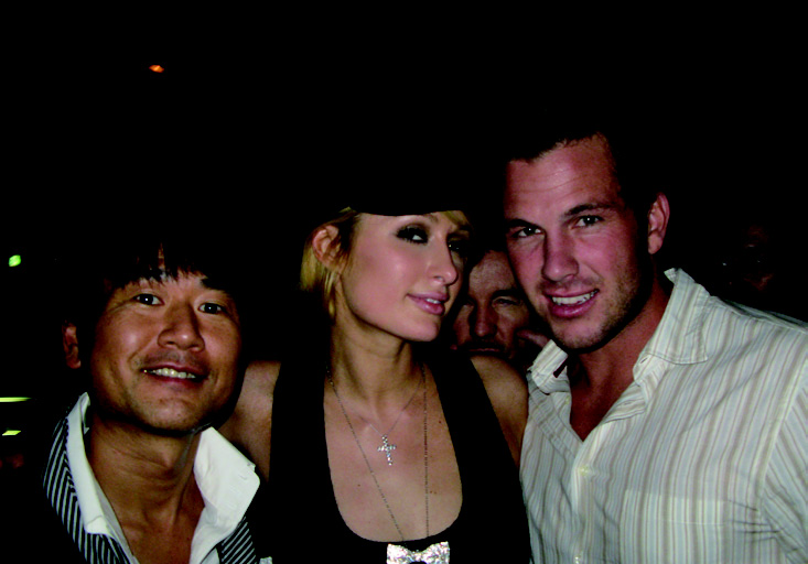 Samantha Thavasa president Kazumasa Terada, Paris, and her current squeeze, former baseball player/actor Doug Reinhart.