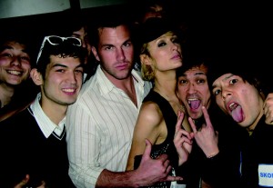 I’m well aware there are people out there who don’t like Paris Hilton, but all I can say is the more time I get to spend with and get to know Paris, the better I like her. This is not based on her marketing image, in which her behavior pretty much reflects on what she, and probably her management, feel is what her fans expect and probably enjoy seeing. There’s no denying she does like to party and be the center of attention. Frankly, most people I know would love to do the same when and if they had the opportunity. I feel fortunate that I’ve been able to see another side of this world celebrity where she’s kind, considerate, and yes, nice, charming, and down to earth. A perfect example was when I had the chance to throw a birthday party for her at the New Lex recently. As always she was the center of attention and as always, everyone wanted to meet her, shake her hand, and have a photo taken with her. This, of course, is impossible when there are several hundred people in the club. Like anyone, she wanted to be with, for the most part, people she came with. These included her current squeeze, former Baltimore Orioles baseball player Doug Reinhart, who’s also acted on the TV series The Hills, one of her Japan sponsors, Samantha Thavasa president Kazumasa Terada, and her security. Once the party got started, a young American sailor came over to me and said “I can’t believe I’m in the same club as Paris Hilton,” and went on to tell me how she had visited his small town in Florida while shooting her reality show The Simple Life. He never got to meet her but saw the show later and remembers her dressed as a mermaid. Then he asked me if I thought there was any possibility she would take a photo with him. I told him to wait a bit and that I’d check it out with her and her security. I explained the situation to Paris and she said, “I remember that shooting, bring him over and let’s do it.” The kid got his picture and I can’t tell you how excited and happy he was. The same thing happened when she was leaving and I was able to get the photo you see in the column of her and a group of her young French fans. Believe me, she really is thoughtful. She was also very excited about getting her little dog out of quarantine at Narita the next morning. Think what you want, but as the song goes, “I love Paris.”