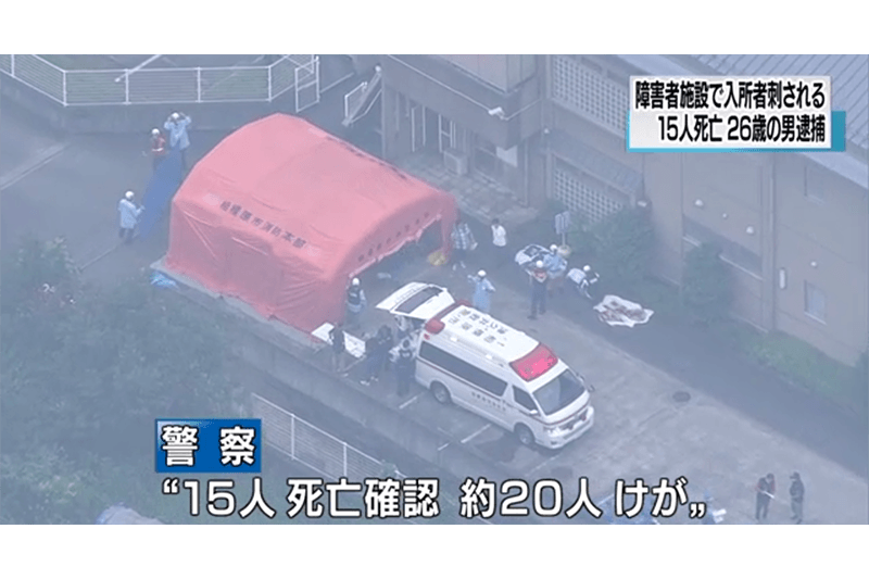 Image: Screenshot from NHK (at time of video broadcast, 15 had been confirmed dead at Tsukui Yamayuri-en)