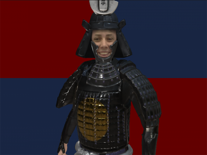 The online process is free and takes only minutes: you upload a photo and the face-recognition technology situates it into your armor. From there, all you have to do is dress your avatar, which is a somewhat similar process to creating a Sims character, but in the lavish regalia of a traditional soldier. You can add your own twist, with options like a camouflage jinbaori (a short coat without sleeves worn over armor) and a polka-dotted dou (chest plate).